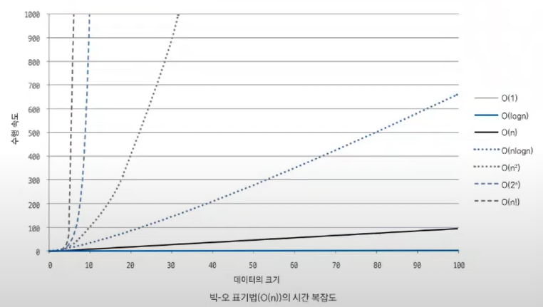 빅-오 표기법의 시간 복잡도는 다음과 같다.